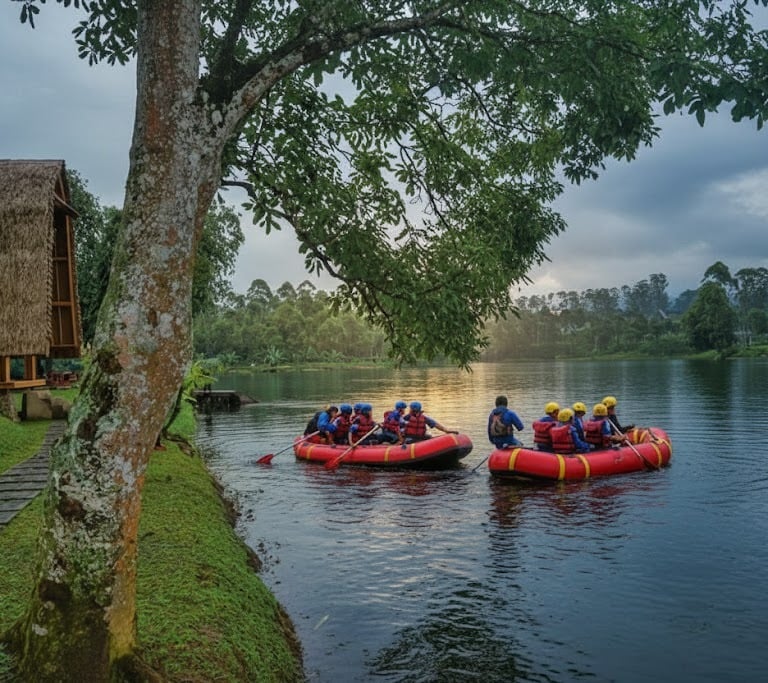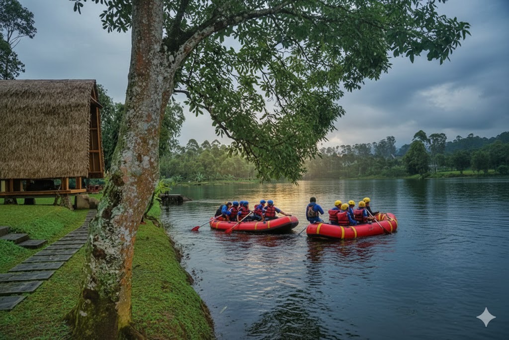 Aktivitas Ekstrem: Arung jeram (rafting) di Sungai Palayangan yang bersumber dari Situ Cileunca.